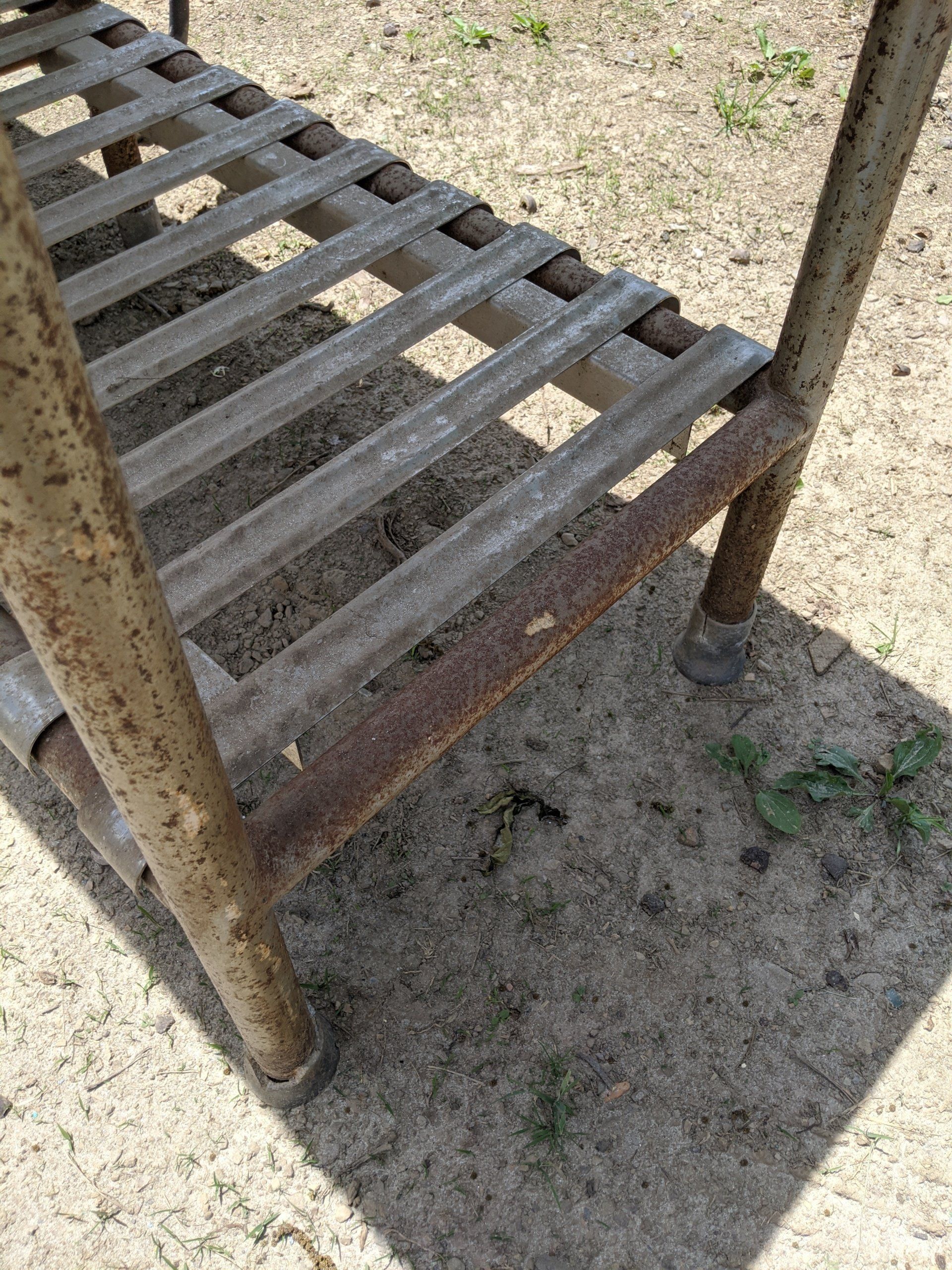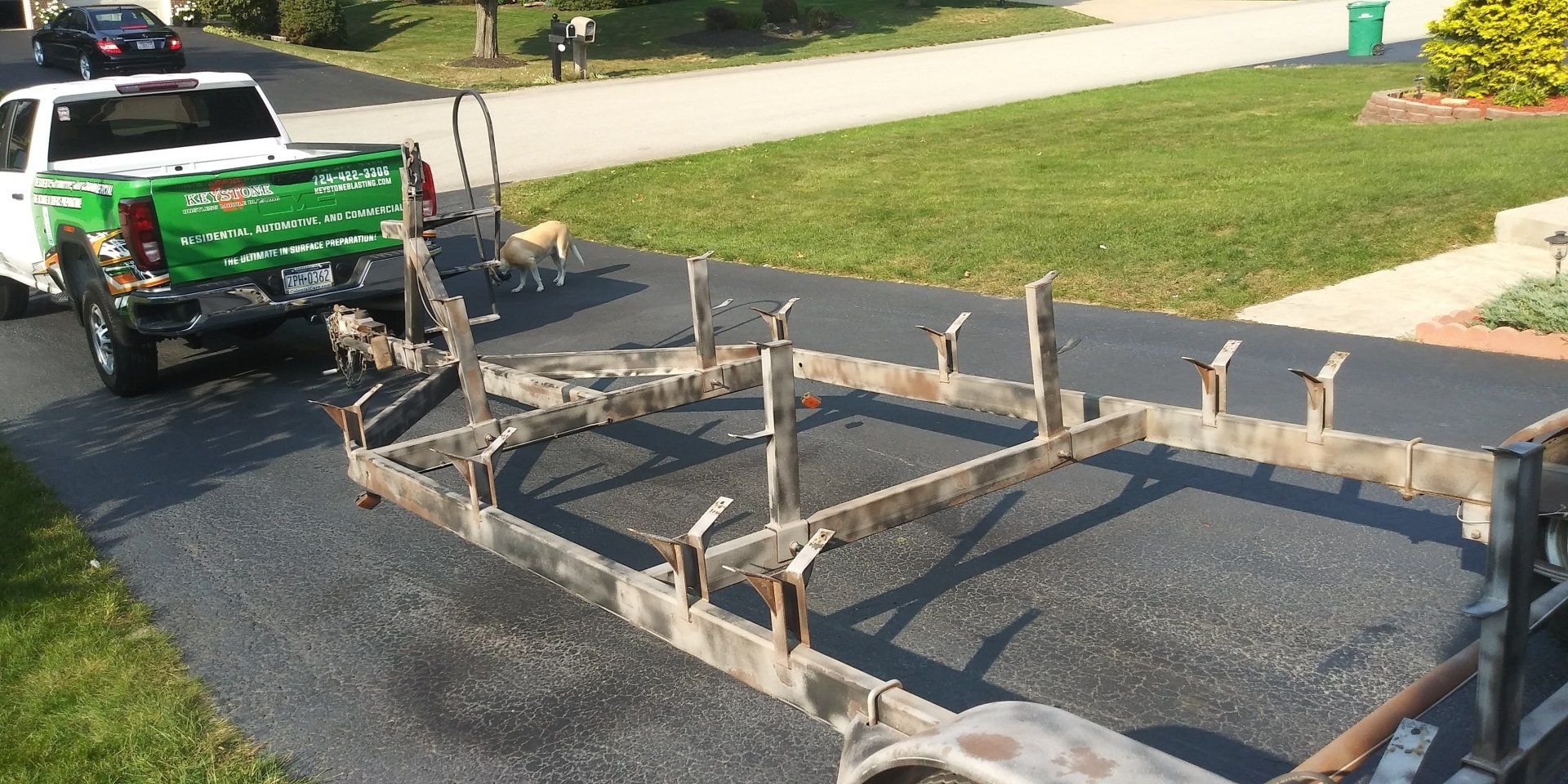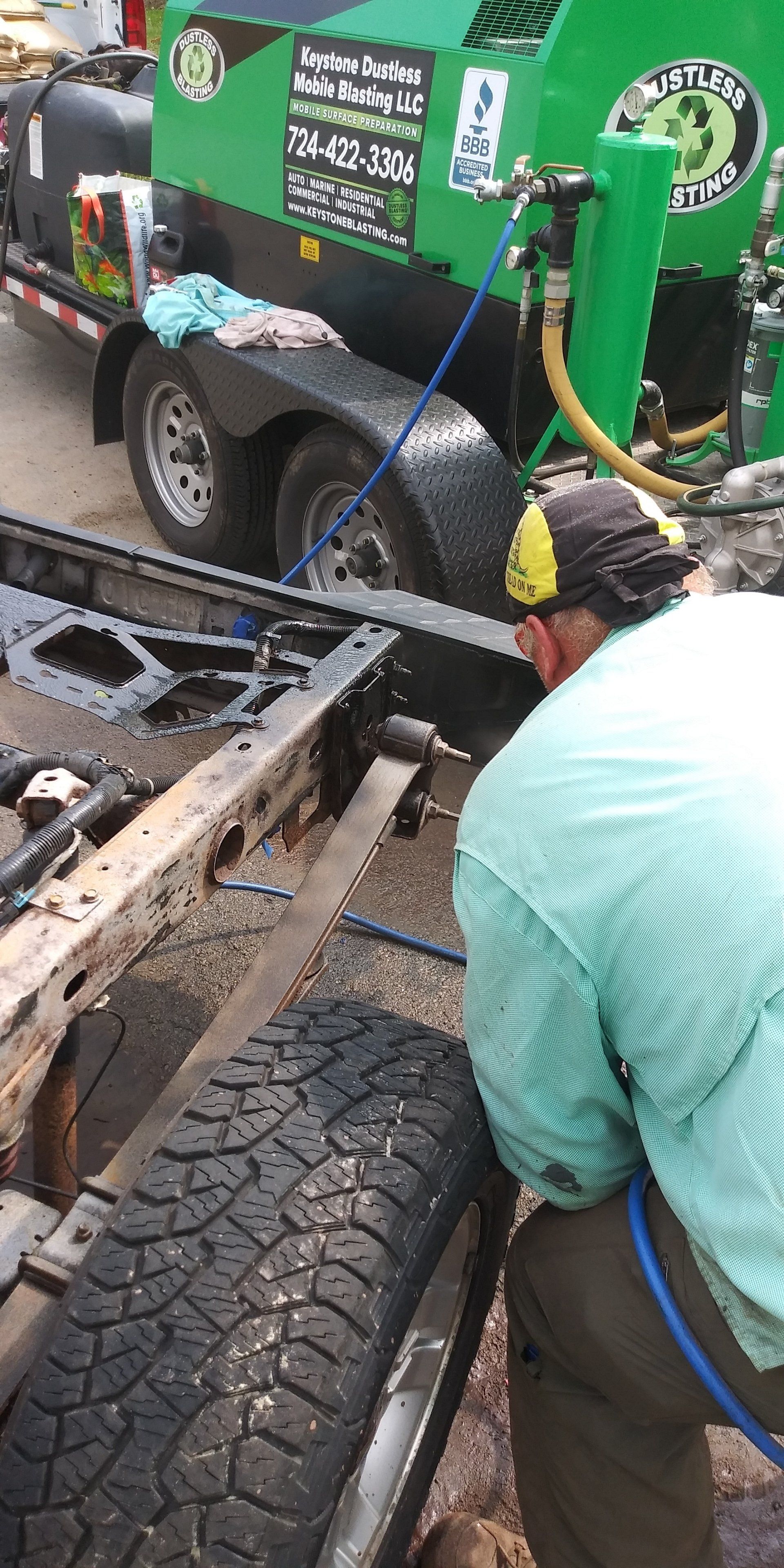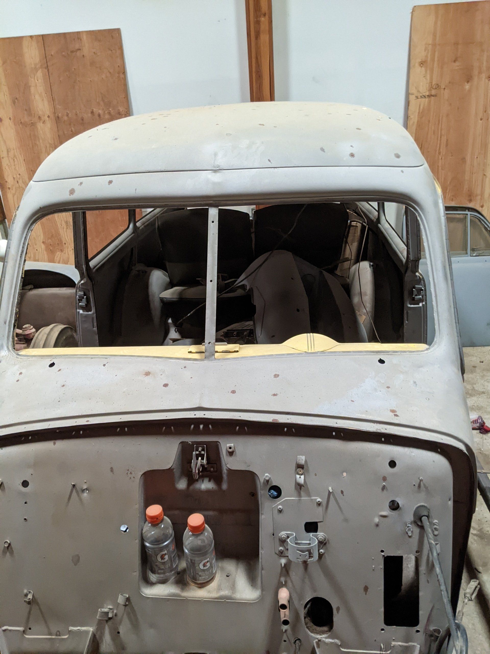 This group has pictures of a very cool old gas pump, circa 1920s and 1930s. The before shows the red paint and rust; the after shows perfectly clean metal ready to prime and paint. Also, the pictures of the wheels are the before and after of