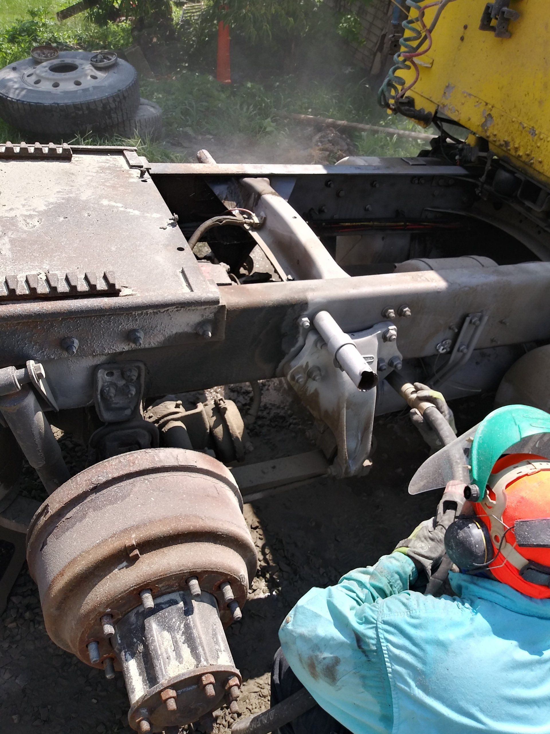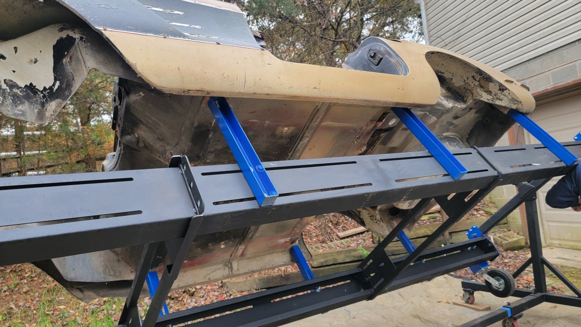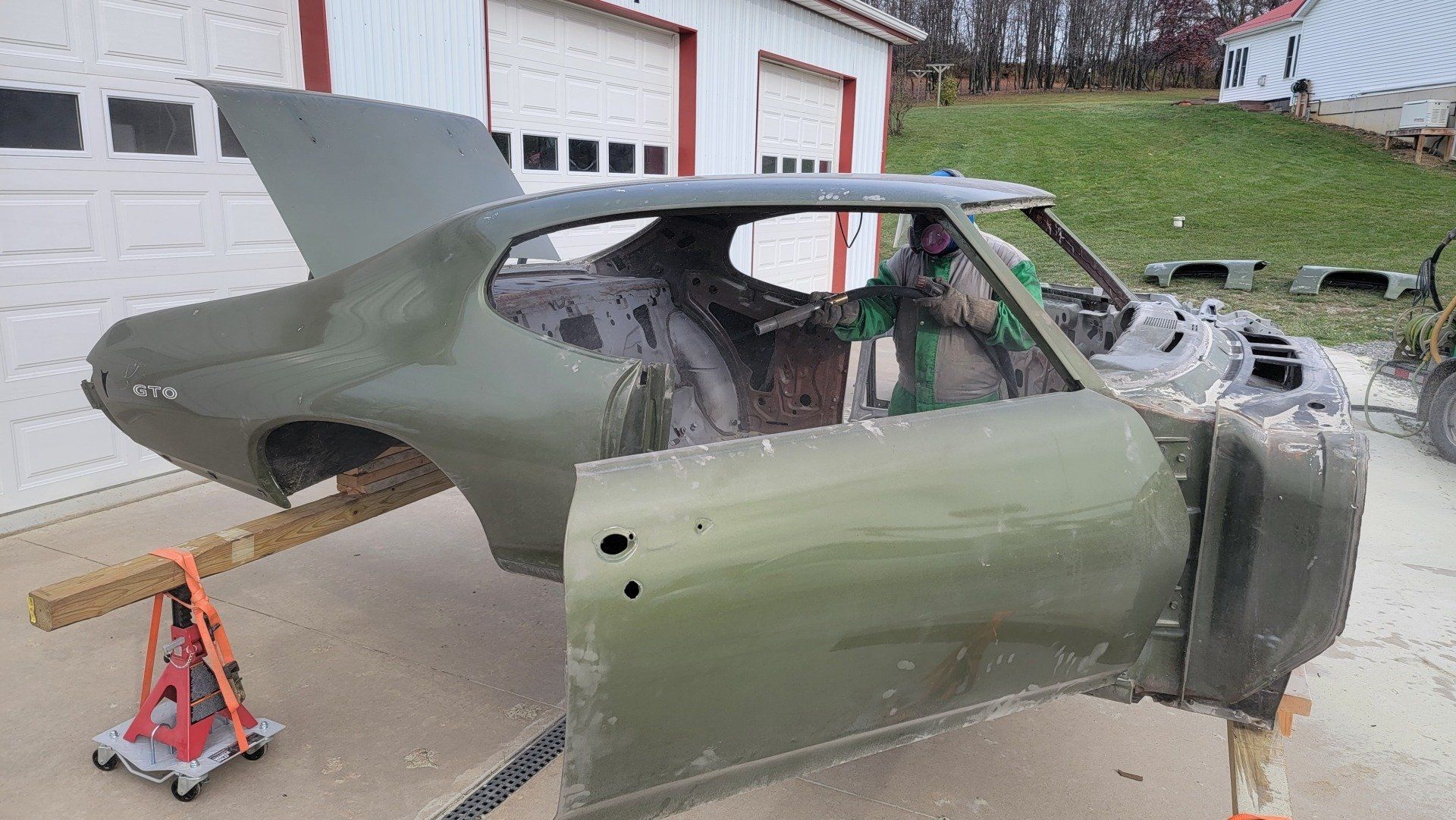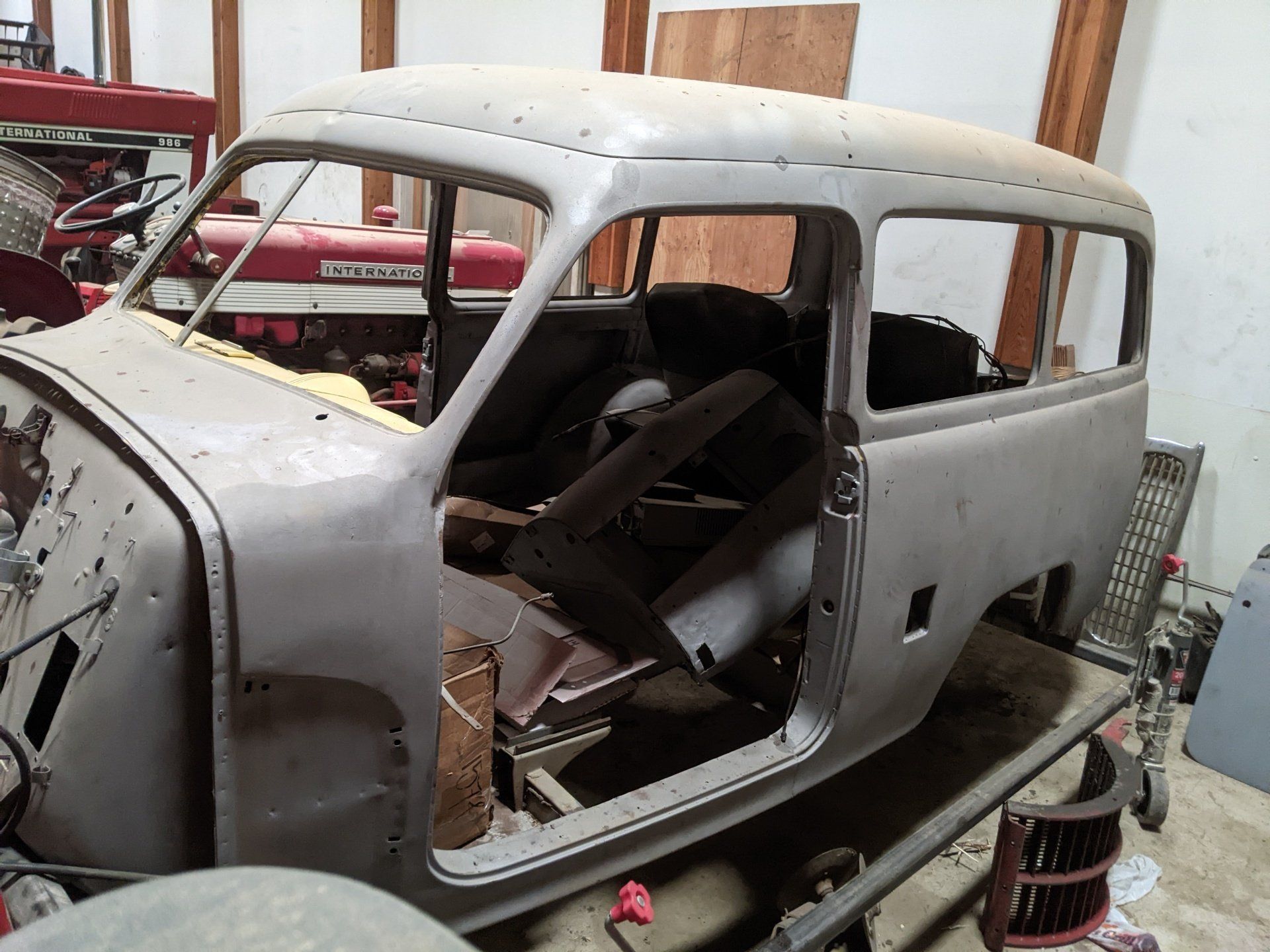 This group has pictures of a very cool old gas pump, circa 1920s and 1930s. The before shows the red paint and rust; the after shows perfectly clean metal ready to prime and paint. Also, the pictures of the wheels are the before and after of