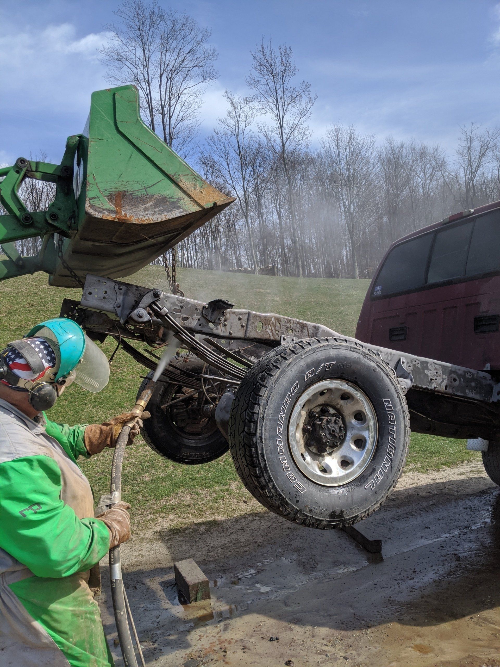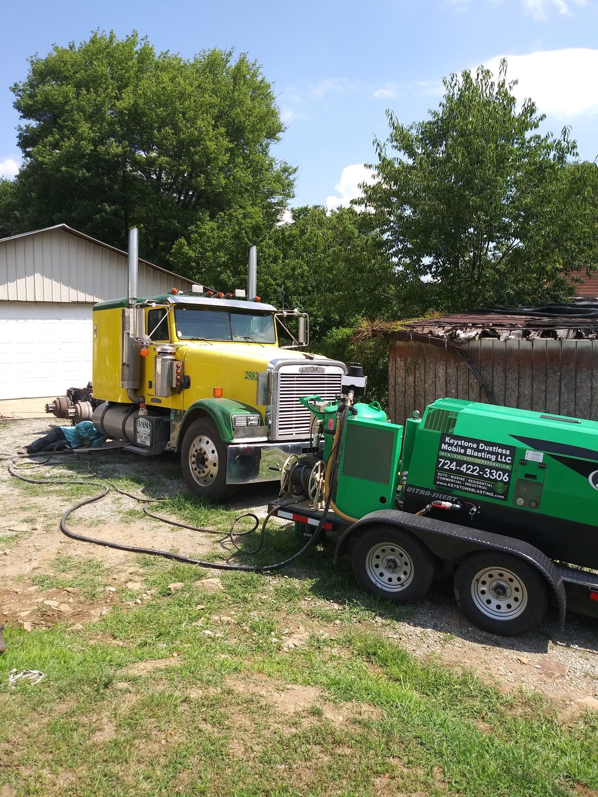 These are pics of our good friend’s house in Marion Center. Joe has a beautiful house, but now it looks even better after we took off all the years of stain and returned it to its original light color so Joe can put some clear stain on it. Joe is a great client, and we hope to see him again soon!